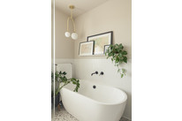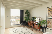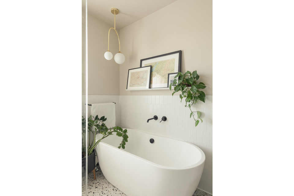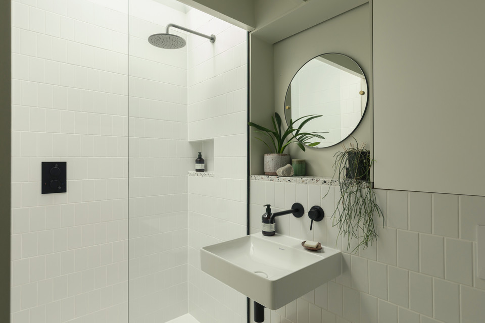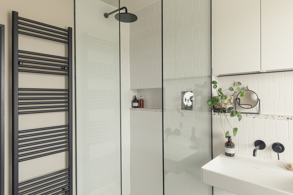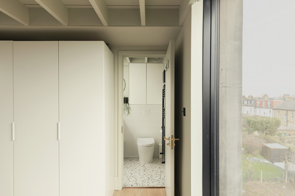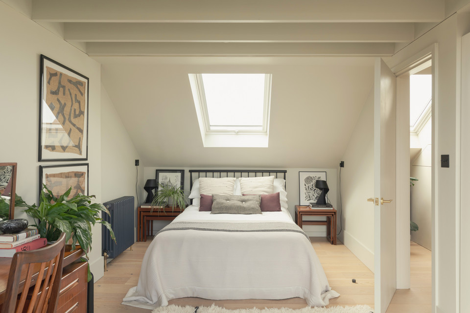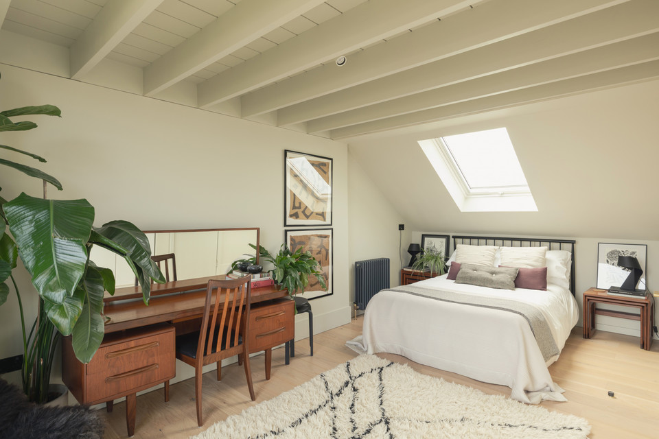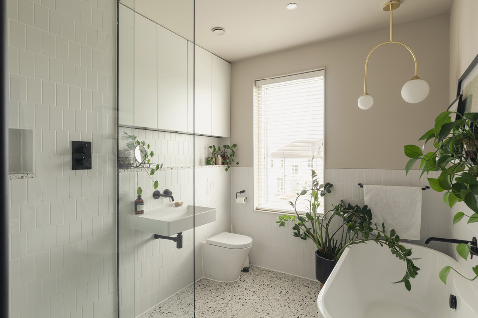 A smaller double also sits at the front of the house (currently in use as a home office), of over 9 feet by over 8 feet. A main windowed bathroom rests to the rear of the floor, with contemporary white sanitaryware and an independent shower, concealed plumbing (as throughout), fitted storage cupboards, monochrome fittings, a heated towel radiator and on-trend Italian terrazzo tiling to the floor.