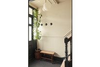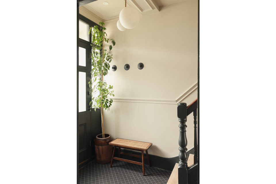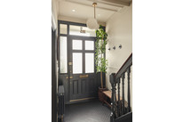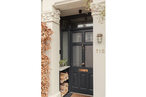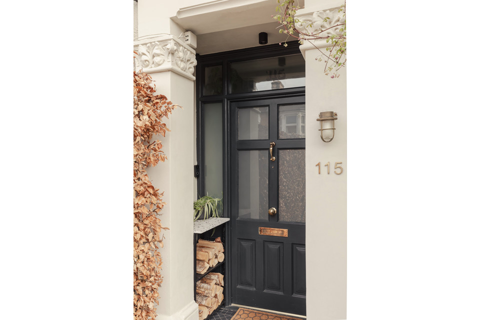 Set your wheels on your own front drive. You also have unrestricted on-street parking. You have a pro-landscaped front garden with mature beech hedging. Additional delights are a climbing white rose, a chocolate vine, and a matt black tiled pathway next to the driveway. An external porch is the perfect spot for storing logs, wellies and such. You’ll note here the original hand-painted door number, side lights and brass ironmongery.