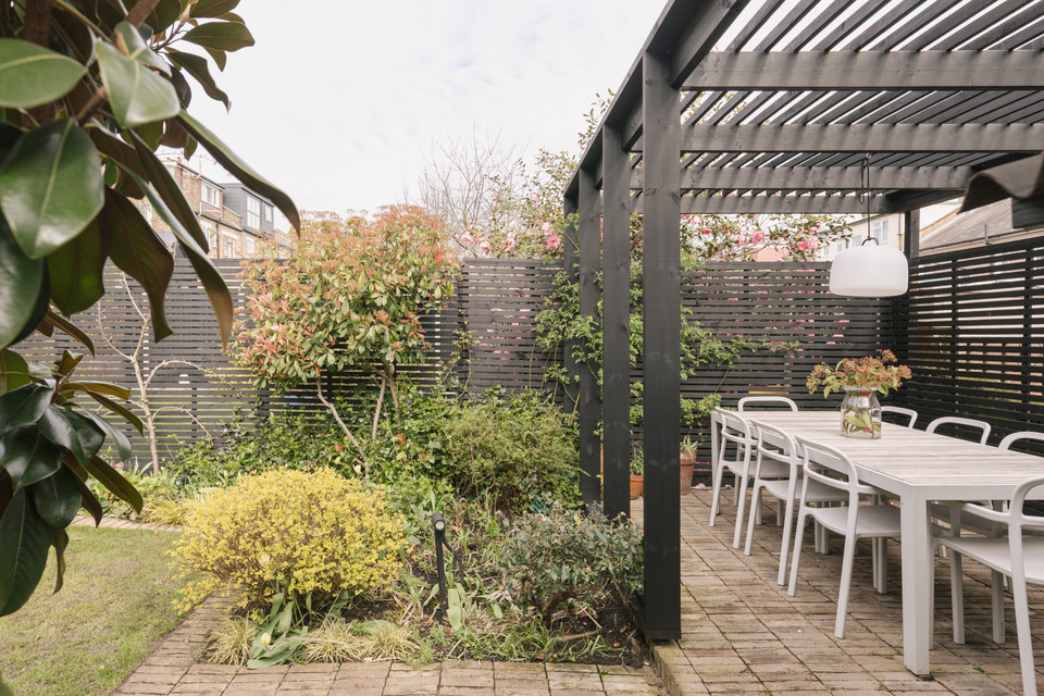 An extended and fully optimised five bedroom Corbett Estate house of 1632 square feet, owned and designed by architects. Your pro-landscaped and generous east-facing garden of circa 50 feet is complete with koi pond, west-facing terrace and BBQ area, bespoke pergola and potting/storage shed, and automatic outdoor lighting.