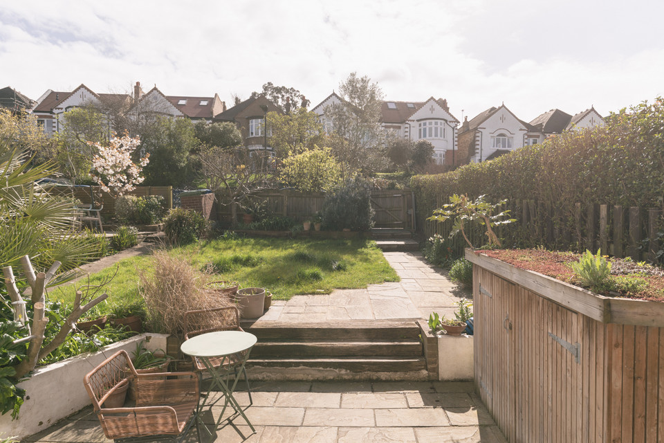 Massive maisonette delivered over 1800 square feet across three floors and incorporating a clever architect-designed extension, with four bedrooms, a home gym, a home office, and both bath and shower rooms. A deep SE-facing front garden and two NW-facing garden areas (with a generous store) to the rear complete the offering.