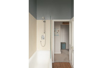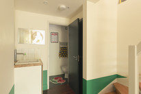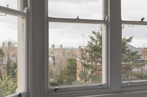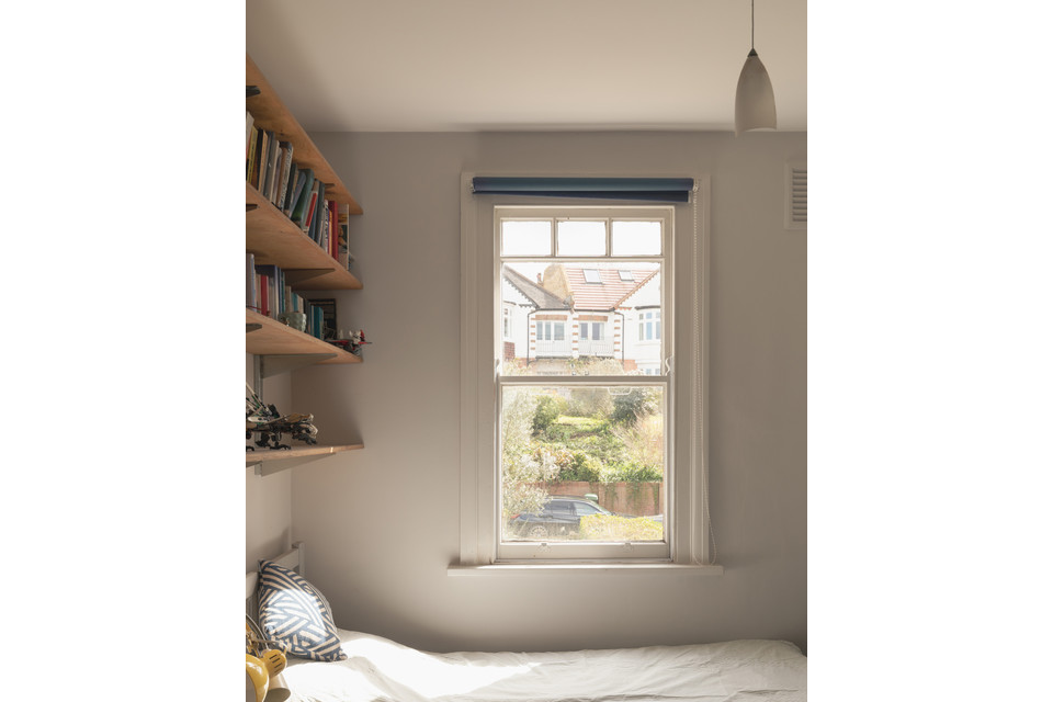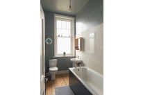 Your windowed bathroom is next door. This has stripped floors, a sash window, and a simple white suite.