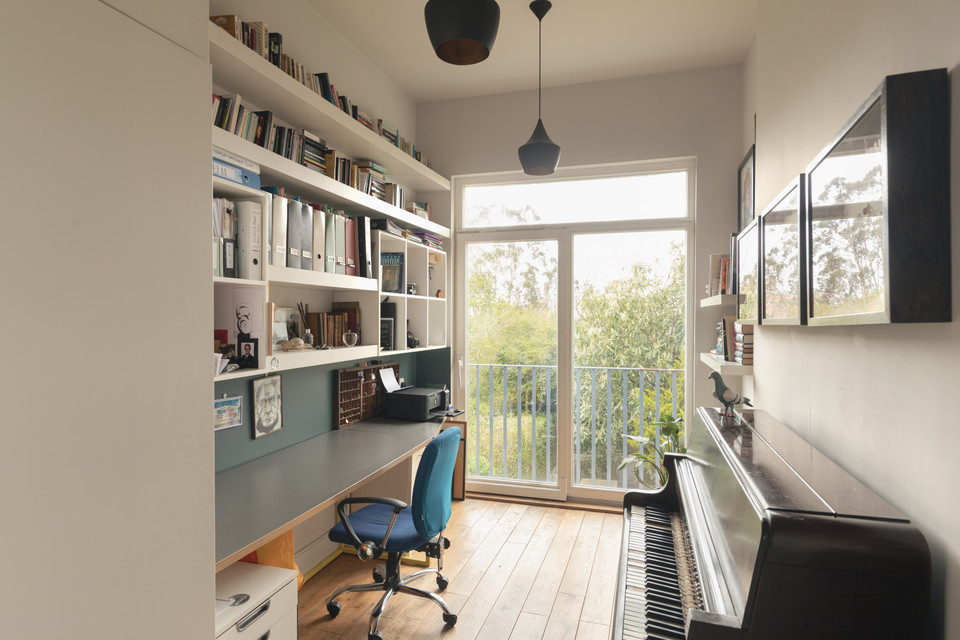At the foot of the hall you have a dedicated home office/music room (or it could be a fifth bedroom), with a pocket door, and sliding glazed doors/Juliet balcony.