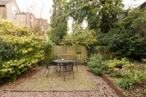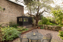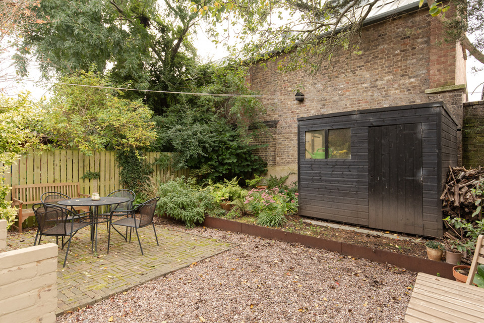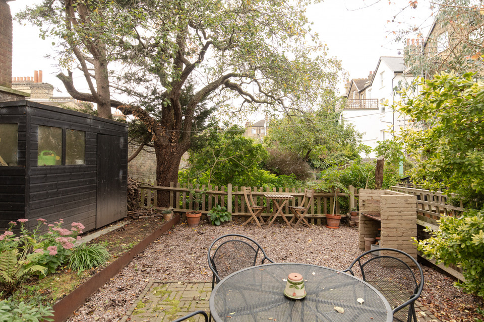 The south-facing garden is accessed via a side gate, ideal for those with bikes. There is a secure bike store with internal railings, and beyond this a large shed in the shade of a pear-tree. Both are finished in a stylish matt black.