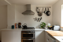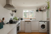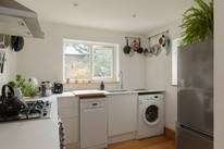 Three steps down to the kitchen gives wonderful views both south and west, out onto the peaceful garden. The kitchen was new to 2021, with an oak floor, cool concealed pantry, new base units and a Mirostone seamless worktop.