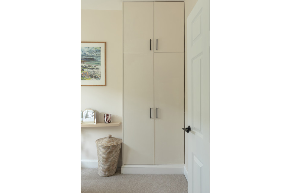 You share a neat hall. In your own front door and to the front of the building you have your first bedroom. This is over 12 feet by over 11 feet, with fitted to-the-ceiling wardrobes to both alcoves.