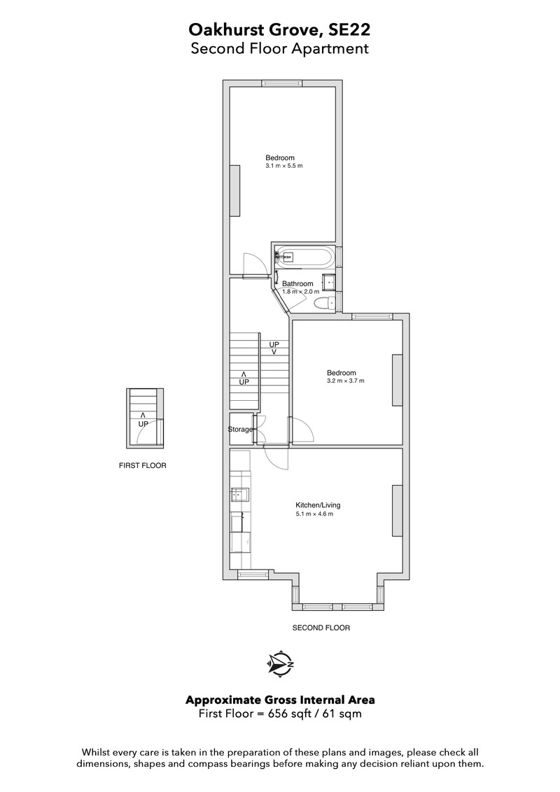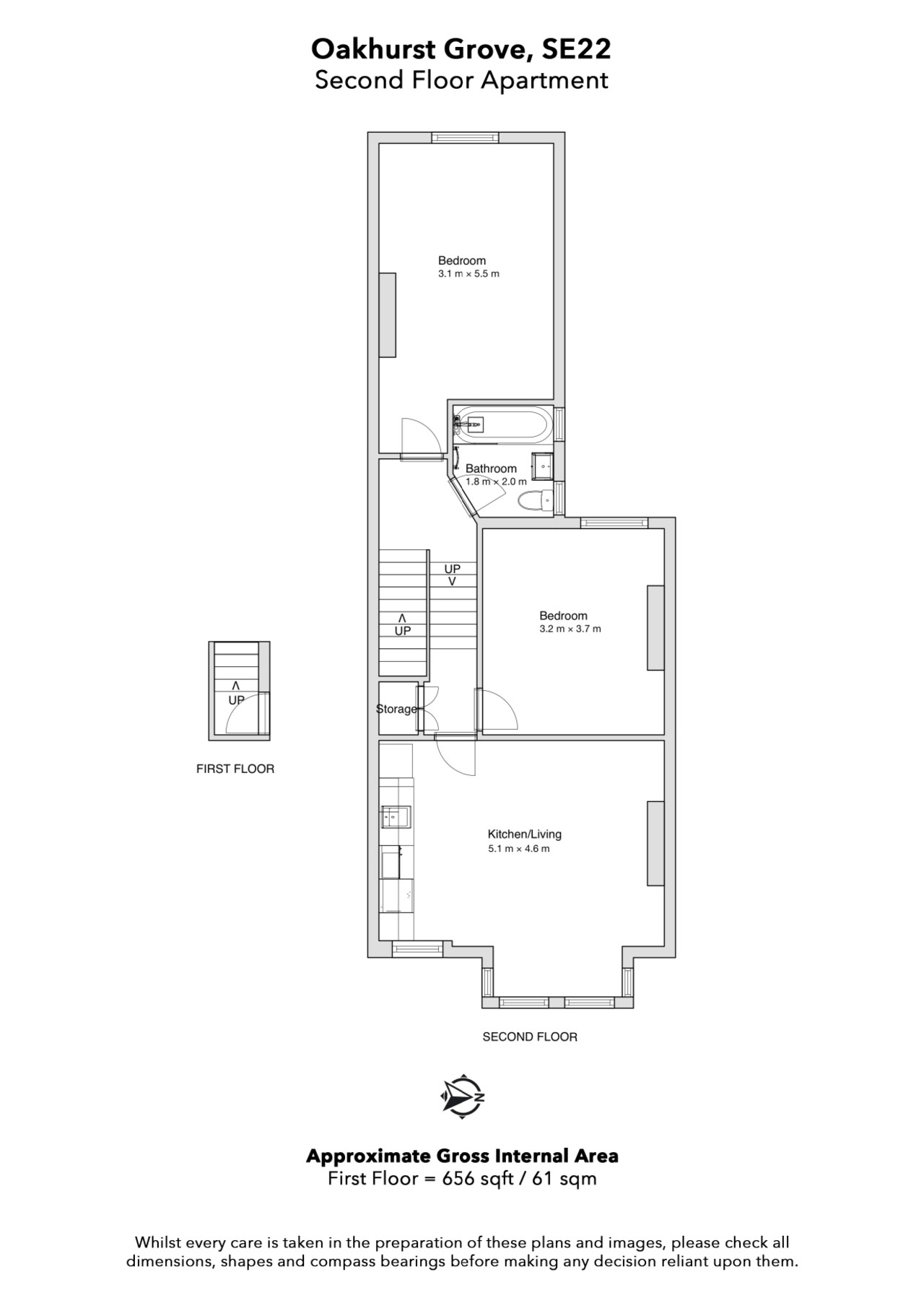 Smart and split-level two double bedroom first floor period conversion flat of 656 square feet, with a new lease of 125 years.