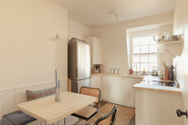 The flat that keeps on giving! Your independent eat-in kitchen completes the tour (more T&G here, it’s all so smart!). We love the clever built-in bench seating (with storage plus custom-made seat cushioning) for casual through to formal meals with your best people. Your fitted kitchen has a pared back aesthetic, paired with wooden counters. A generous open-shelf is another welcome decision - both practical and attractive. New appliances (including washing machine) are included in the sale.