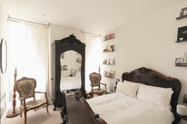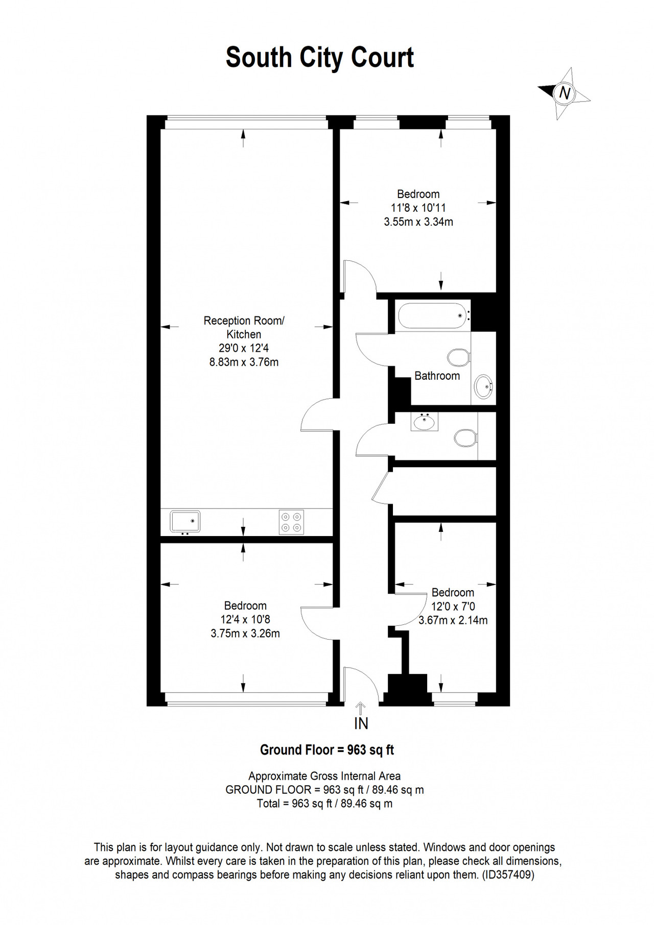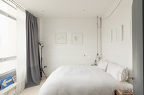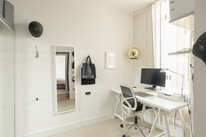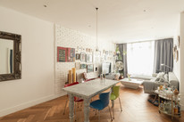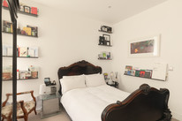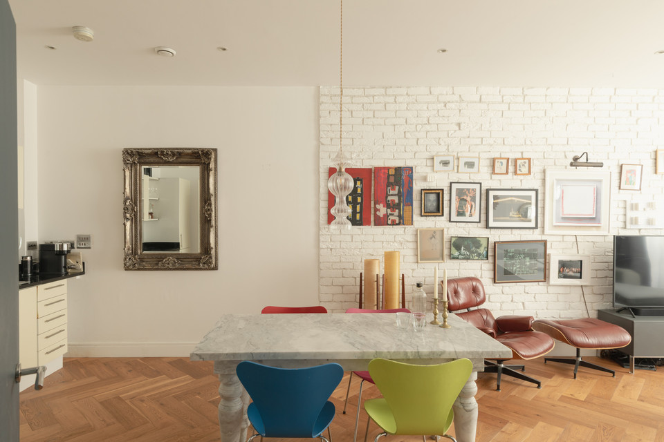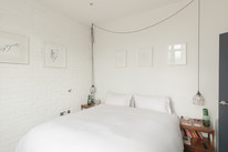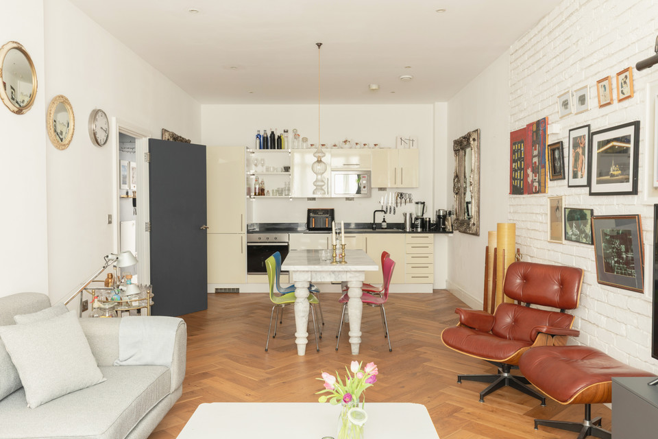 Large, light and lovely warehouse-style three bedroom apartment (two big doubles, one big single) with a sleek bathroom and independent guest w.c. as well, high ceilings, exposed brickwork, and an east/west orientation. The cherry on top is a private designated parking space just outside.