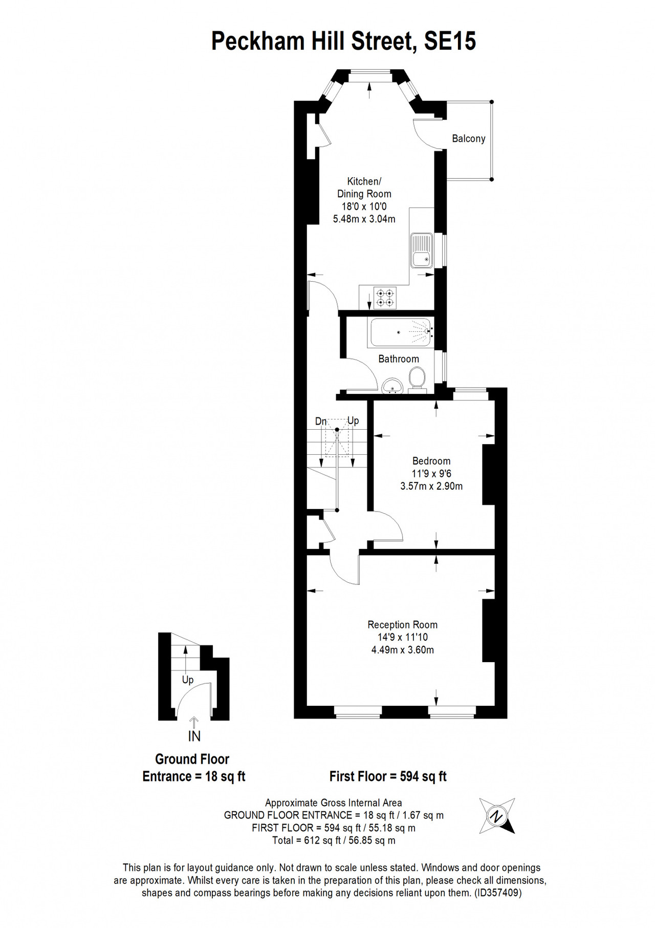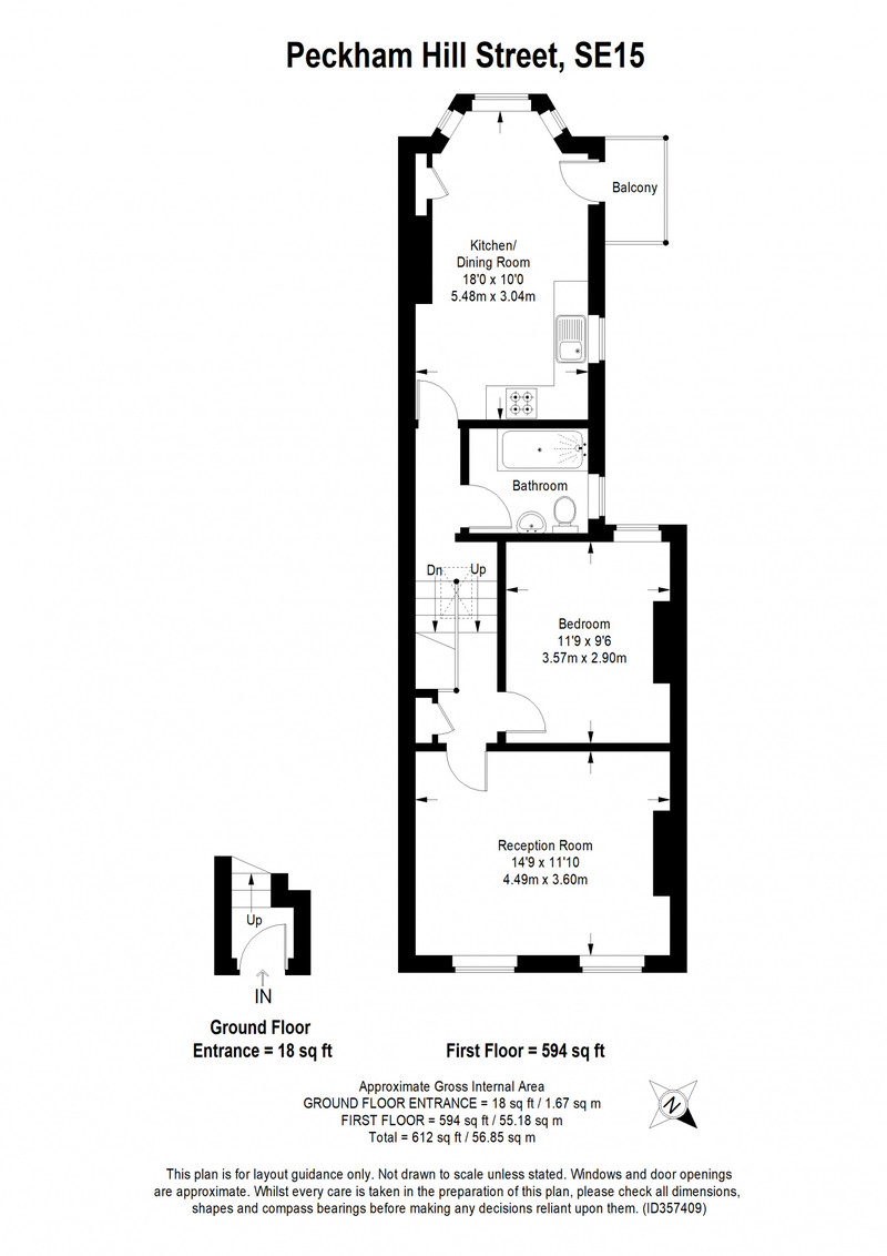 Smart and oversized first floor Victorian conversion flat of 612 square feet, with attractive allotment views from the reception/kitchen’s bay window, and a cute metal balcony. A large loft is also demised to the flat. More good news? The seller is in the process of extending the lease.