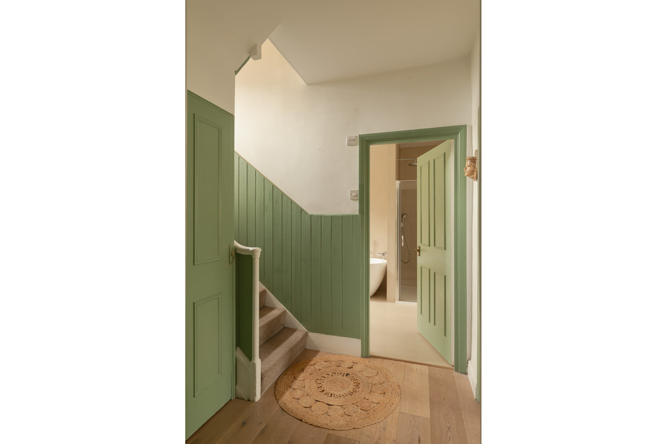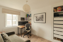 Up the stairs and your principal bedroom is at the front, of over 14 feet by over 12 feet, with a duo of east-facing windows. Adjacent is your second bedroom - a double of over 11 feet by nearly 9 feet. Both bedrooms have engineered oak floors.