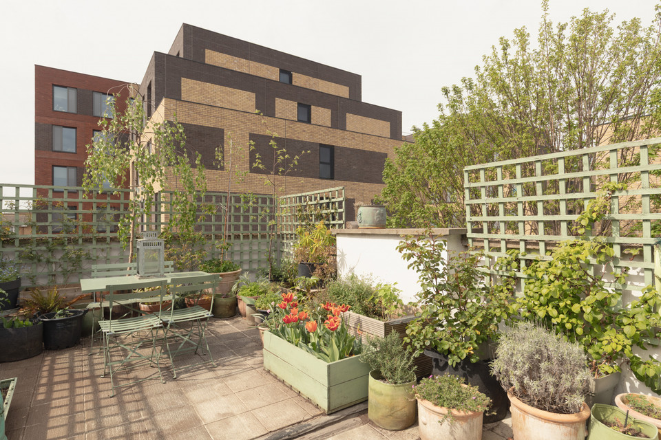 A generous and paved roof terrace (of over 21 feet by over 14 feet) completes your tour. It faces west so you will enjoy splendid afternoon rays.