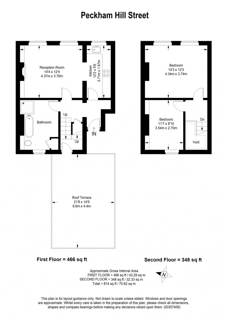 Bright and spacious two double bedroom flat of 814 square feet and with a Freehold-share, over two upper floors (first and second). A private and low-maintenance west-facing roof terrace seals the deal.