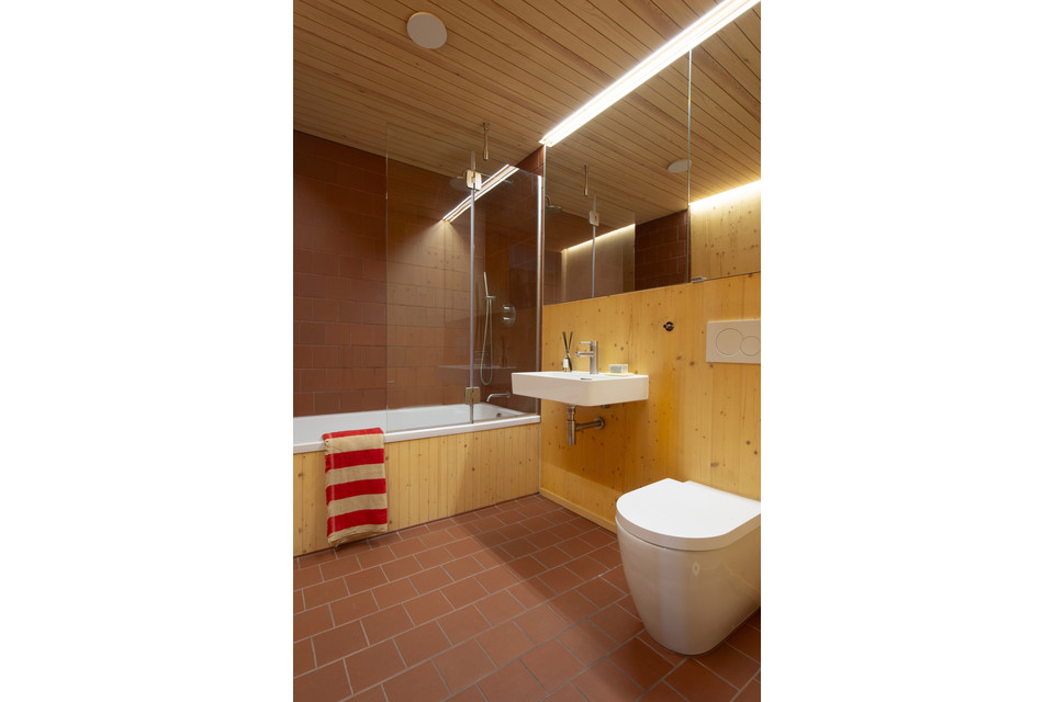 Right of the front door, across the hall, you have the property’s bathroom, with contemporary white suite (Laufen and Duravit sanitaryware) and over bath shower.