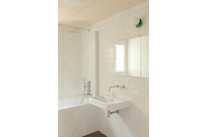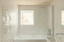 Your roomy bathroom is straight ahead from the hall, with concealed plumbing, a modern white heated towel radiator, and a contemporary suite and fittings (which include a bath and over-head shower).