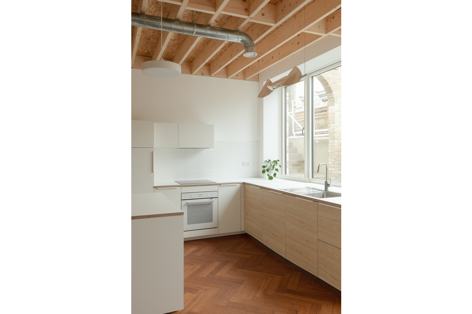 Your large main room completes the tour, with wall-spanning glazed doors at its foot. We love the perfectly-laid engineered oak herringbone flooring here, and you have plenty of space for zoning reception and dining spaces. Your custom-made smart fitted kitchen, in a pared back style, sits to the front of the building. A central island/drawered unit on castors keeps options flexible, for when you have those must-have soirées. High-end appliances (including an induction hob) are integrated, and included in the sale.