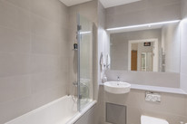 Access is via secure gate and then secure main front door. Take the lift or stairs to your own front door on floor four. On entry you have utility and storage cupboards to your right and left. These are built-in. Over the hall is your modern internal bathroom with contemporary suite and fittings.