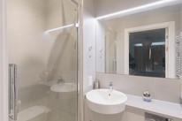 The west-wing of the apartment hosts your two double bedrooms. These are both very generous at over 17 feet long, and the principal has a built-in closet and an en suite shower room.