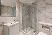 Access your floor via lift or stairs. On entry, to your right is a modern internal bathroom with neat white suite and over-bath shower. Next along you open to the largest of your bedrooms. This one is over 12 feet by over 10 feet, with a private shower room set off one corner on the angle.