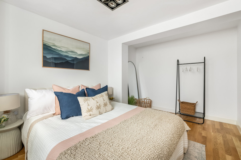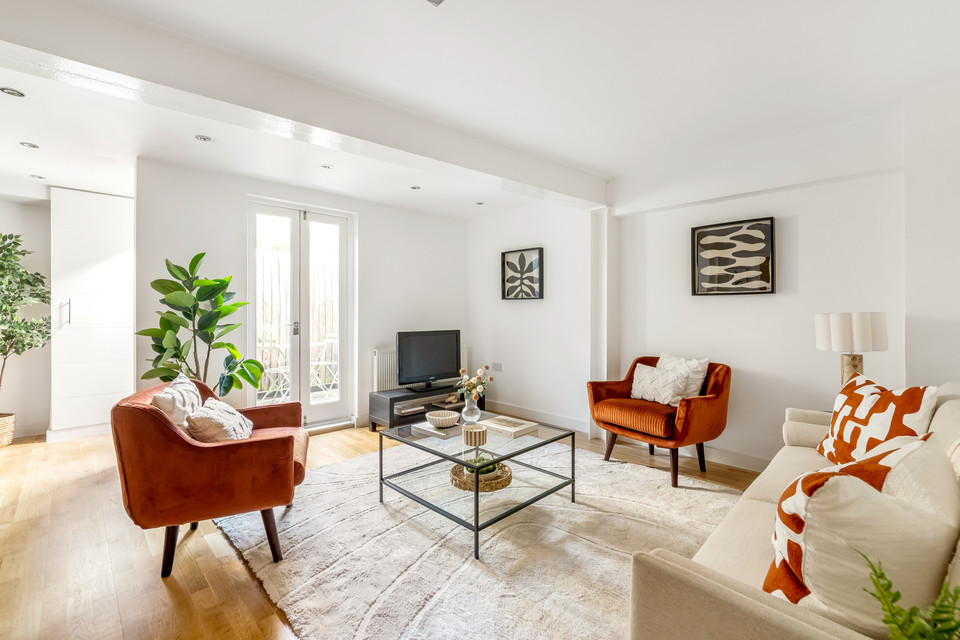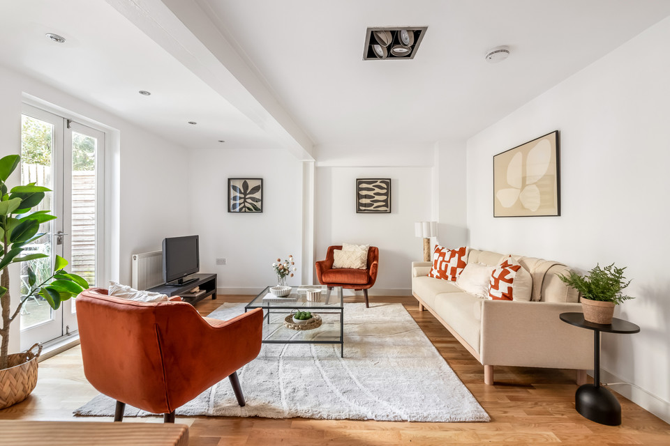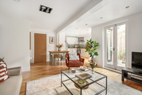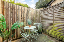 At the foot of the hall you open into the main event: the large open-plan reception which is open-plan to the (fitted) kitchen and has loads of space to zone lounge and dining areas. French doors deliver you to your super sweet courtyard where you can pop your bistro table and chairs and your favourite potted plants. A large storage cupboard (for suitcases, vacuum cleaner, ironing board and suchlike) completes the tour.
