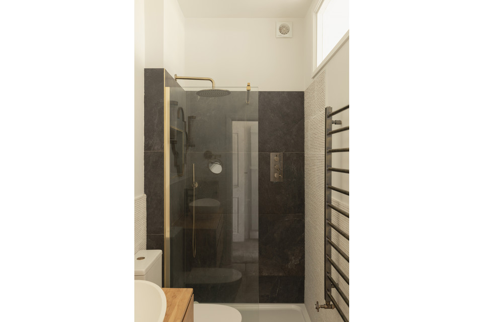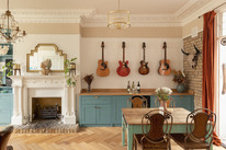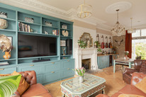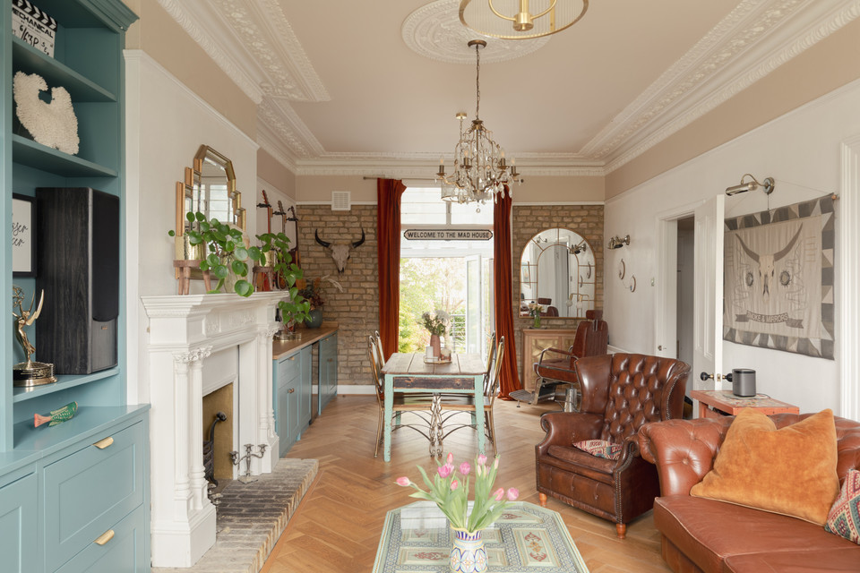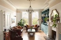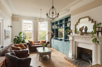 A deep shared lawned garden fronts the house, setting you back from the pavement (there is just one property above yours). In your own front door from the shared lobby and your huge double-reception rests to your left. High ceilings, engineered oak herringbone floors, custom-made fitted storage, original shutters to your sash windows, a gorgeous fireplace, ornate coving and cornice work plus ceiling rose all impress to the max. The dream of a room runs over 26 feet by 13 feet, allowing for easy zoning of generous seating and dining areas.