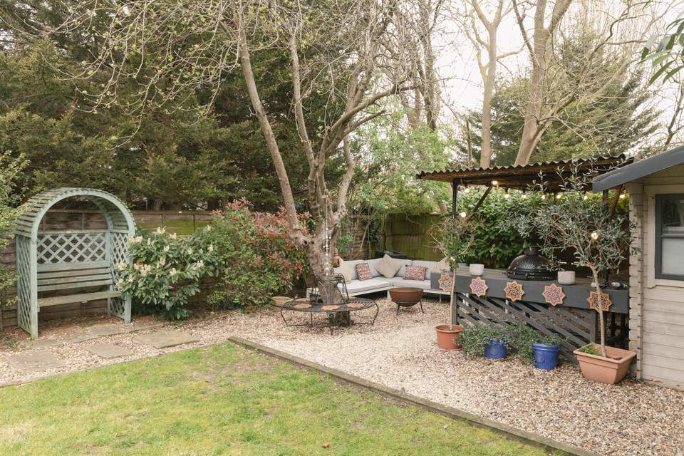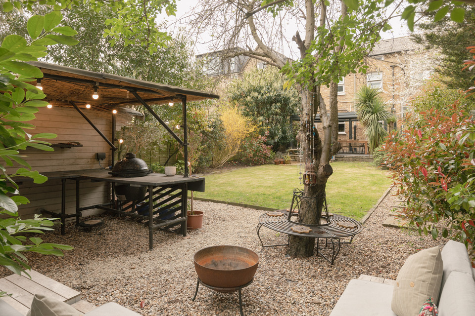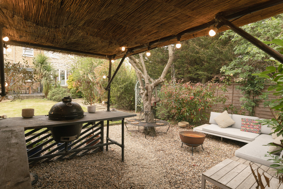 Your sunny, well-stocked garden gets lots of sun and is all kinds of fabulous. There is a large lawn at its centre. Then next to the house you have a paved area with weatherproof sun room; this can be fully enclosed really easily for gatherings, parties, movie screenings etc. Or enjoy it with just its roof for welcome relief from the high summer sun (children’s parties, shaded long lunches etc.). At the foot of the garden you have a second dedicated shingled entertaining space plus covered area. It is perfect for BBQ and drinks. Better start planning the housewarming!