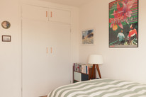 Next along the hall is a built-in cupboard then the door to your bedroom. This is over 14 feet by over 9 feet, with sliding doors directly onto your own sunny balcony (it is east-facing = fabulous for early sun/your morning coffee). At the opposite end of the room you have a generous built-in wardrobe.