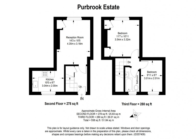 Up the stairs and your principal bedroom is set over the reception, of over 11 feet by nearly 11 feet. A pair of built-in alcove wardrobes impress.