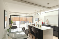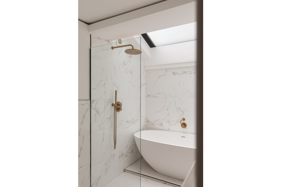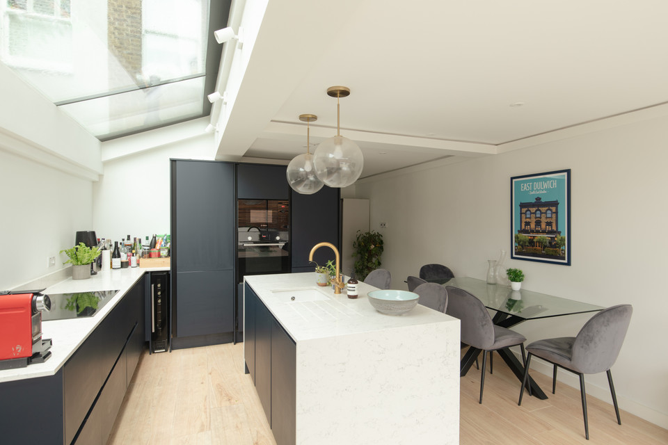The main event is next up: your large and light kitchen/reception/dining room with wall-spanning folding doors plus an apex window onto the garden. Oh so impressive and super entertaining-friendly. Your smart fitted kitchen has a generous number of wall and base units and a central island, and high-end integrated appliances.