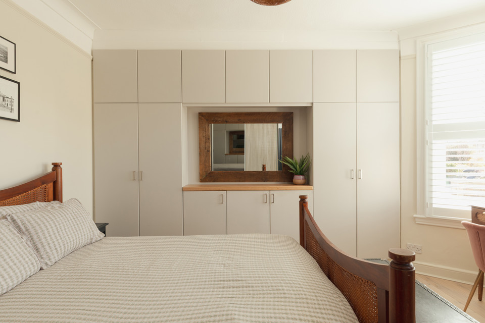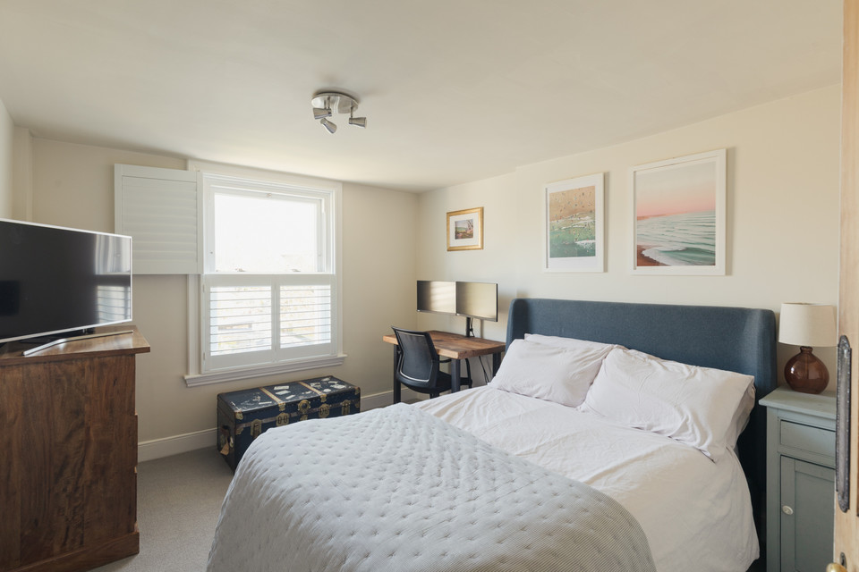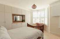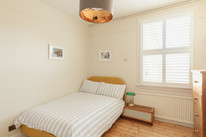 From the main landing, your principal bay-windowed bedroom (more bespoke shutters bring more smiles in all of the bedrooms) is to the front of the house, of over 16 feet by nearly 14 feet, with engineered oak flooring, and built-in cupboards across a whole wall - for storing clothes, shoes and bed linen.