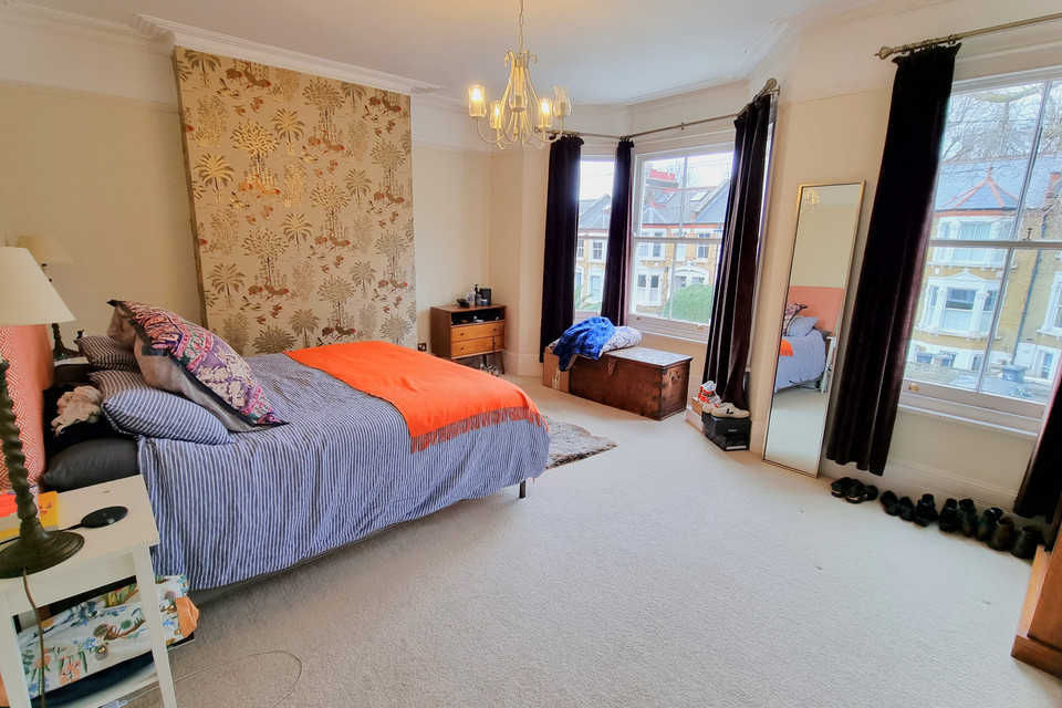 From the main landing you have a good double bedroom to your left (of over 11 feet by over 10 feet). Then the large principal bedroom - with big bay window and additional sash - is set across the front of the house. This is over 16 feet by over 15 feet and has a pale carpet.