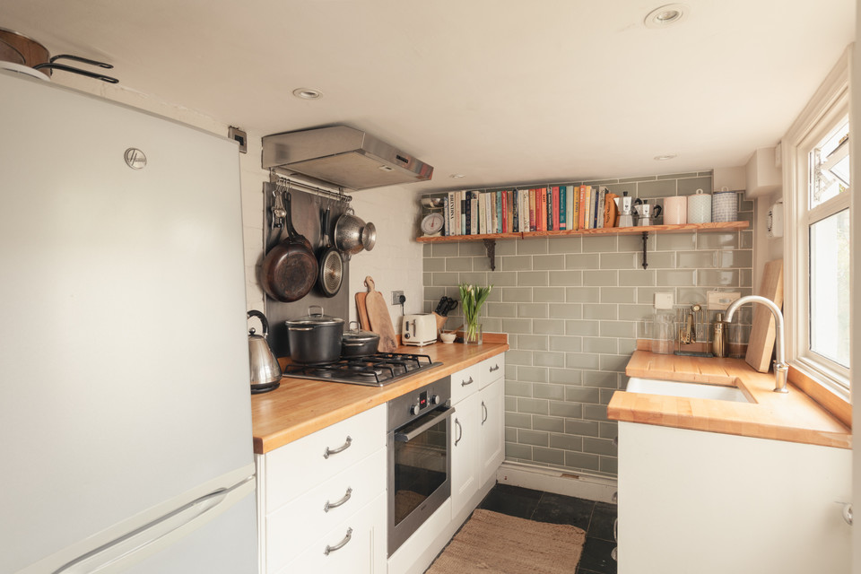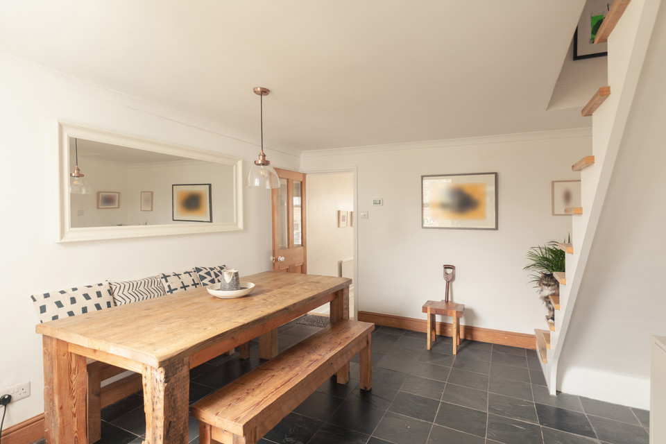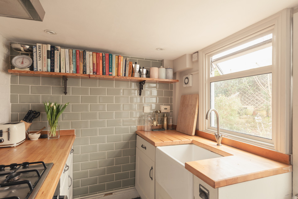 The independent fitted kitchen rests at the rear of the house, with timeless units paired with wooden worktops. There is a window over the sink area and a back door next to this, which delivers you to the very-entertaining-friendly garden. Invite friends over for your welcome BBQ through your side gate (which is also handy for dealing with garden waste or rolling your bicycles through).