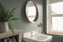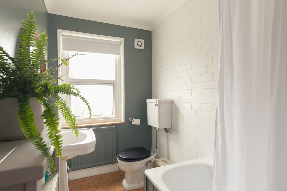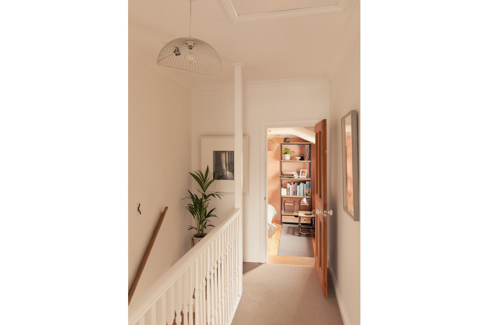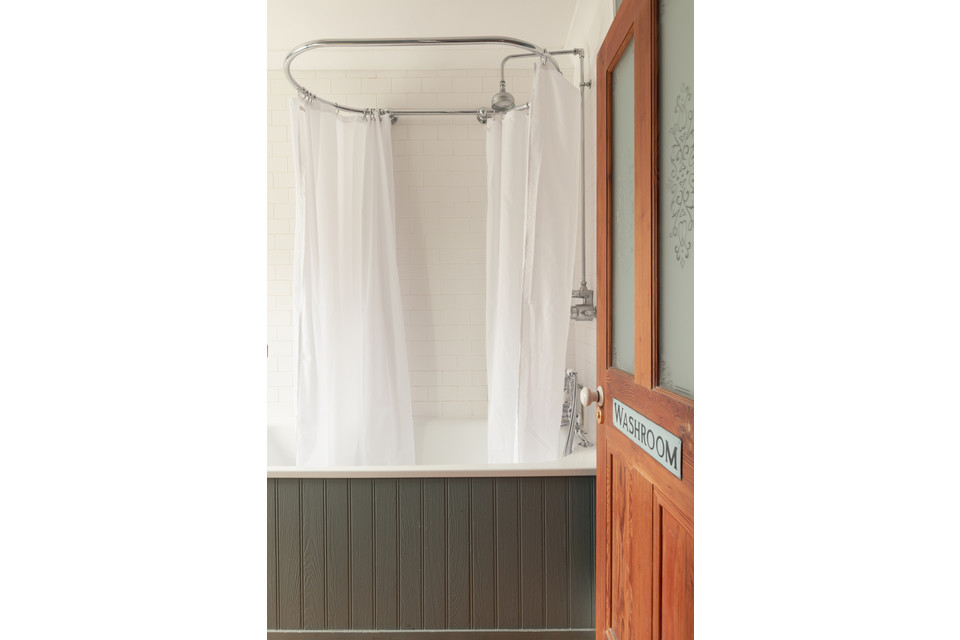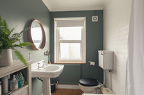 Next door is the property’s windowed bathroom, with tasteful traditional-style sanitaryware and fittings, an over-bath shower, metro-tiling, and original boards to the floor.