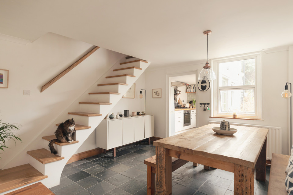 A white picket-fence is a pleasing welcome. You open to your front reception (of over 11 feet by over 10 feet) which sets the cottage-character nicely, with a central wood burner and alcove shelving either side. There is soft carpet to the floor. On through and you land in reception two (of over 12 feet by over 11 feet): the natural dining room, with a beautiful slate floor, and solid oak stair treads leading up to the first floor.