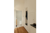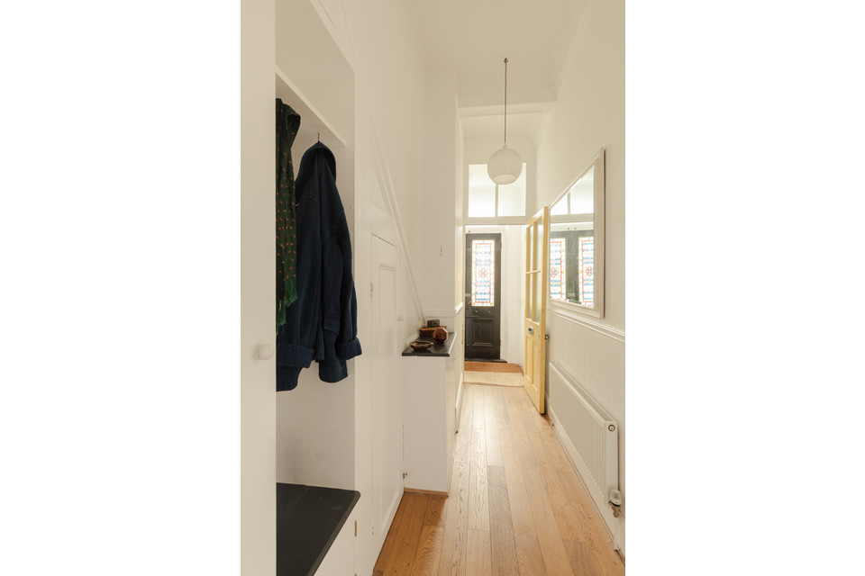 From the welcoming and bright shared hall your own front door is straight ahead. Built-in cupboards to your right in your own hall take care of storing coats, shoes, cleaning stuff and suchlike, and there is a useful nook/seat and additional loft type storage suitcases/bags that you don’t need day to day.