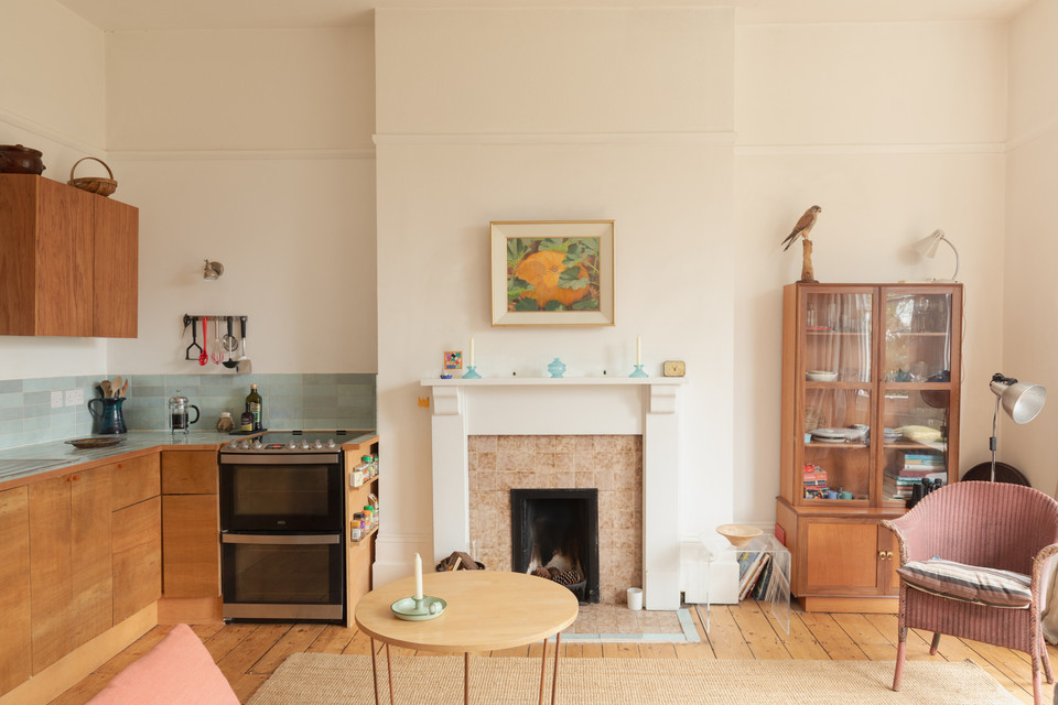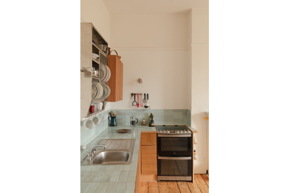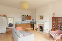 The main event awaits: your huge open-plan reception/dining room/kitchen, of 20 feet by nearly 16 feet. A huge bay window gives verdant views over the generous and mature communal garden. The charming kitchen has wooden fitted wall and base units paired with glazed ceramic tiling.