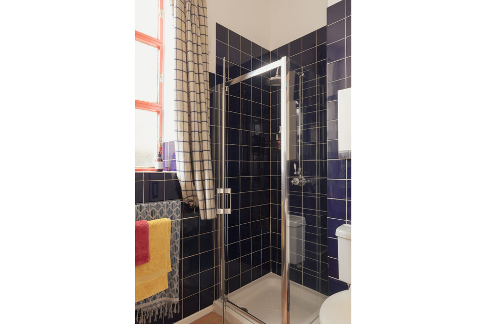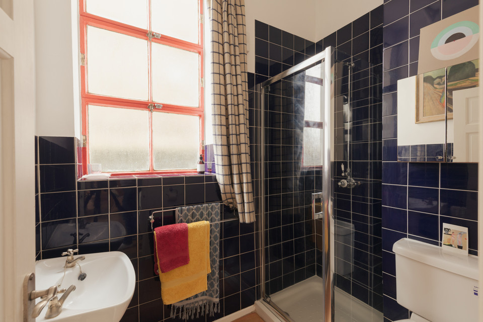 A shared front garden sets the attractive building back from the pavement. On entry to the flat (swoon at those ceilings!), you first have your shower room to your right, with a cool Crittall window, white sanitaryware, and traditional-style fittings.