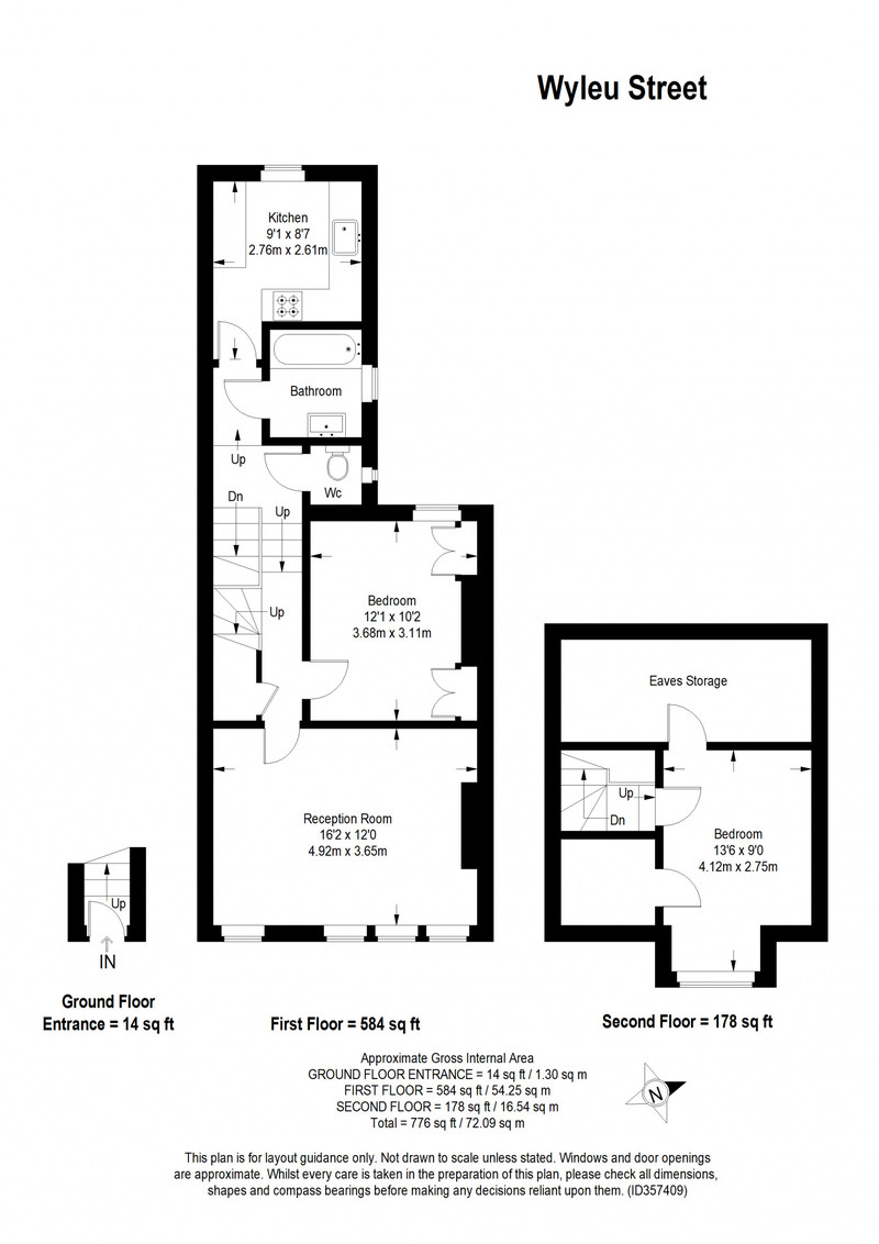 Take the stairs to your second floor and you will find the second bedroom, of over 13 feet by 9 feet. Off here you have a deep walk-in wardrobe and also accessible eaves storage (grand for suitcases, Christmas decorations and such).